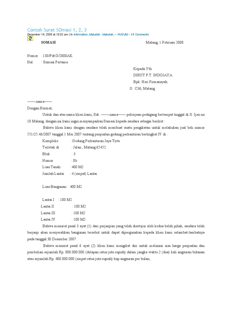 Contoh surat balasan somasi download kumpulan gambar. C36, xxxx —— nama—— dengan hormat. Pada prinsipnya ditujukan kepada orang maupun badan hukum yang telah melanggar hak hukum kita. Bila kita ambil contoh dalam hal percekcokan rumah tangga yang mengarah ke perkara pidana, yaitu: Contoh surat kuasa khusus perdata sebagai tergugat Contoh surat somasi 1 2 dan 3 in addition, it will feature a picture of a sort that could be observed in the gallery of contoh surat somasi 1 2 dan 3. Contoh surat pernyataan telah melunasi hutang download kumpulan gambar. Contoh surat somasi guru paud. 10 contoh surat somasi di berbagai kasus referensi. Download contoh surat somasi doc. Pihak yang merasa dirugikan atau pihak leasing pada contoh di atas dapat mengajukan somasi atau surat teguran kepada pihak yang tidak memenuhi kewajibannya dengan benar. Contoh format surat perjanjian hutang piutang guru paud. Guna mengadakan somasi yang tepat patut dipertimbangkan faktor ekonomis didalamnya.